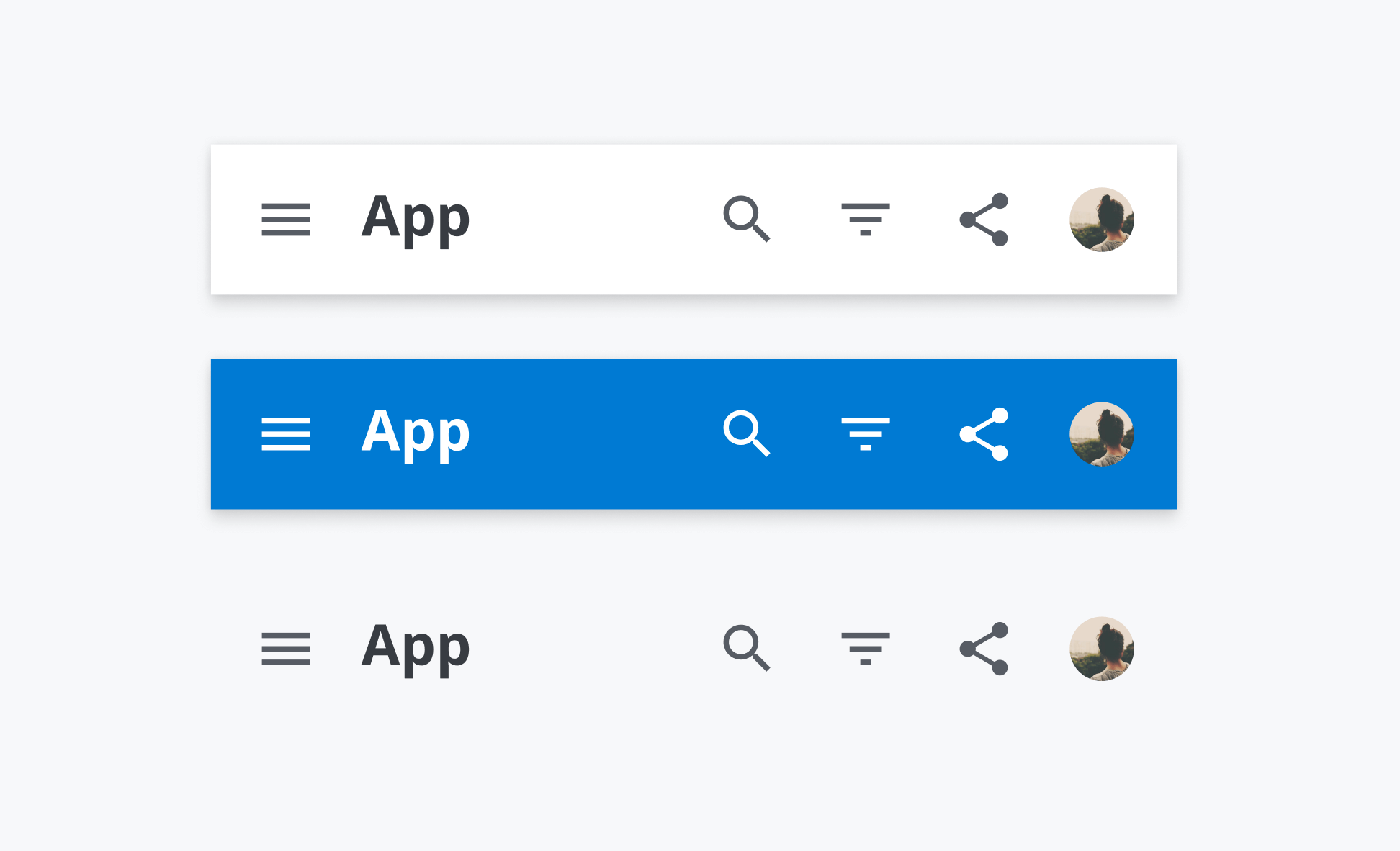 アプリケーションのHeaderであるApp Bar及びModeを作るメジャースタック系コンポーネント(Dialog、Navigation Drawer、Sheet)のヘッダーに使用できます。