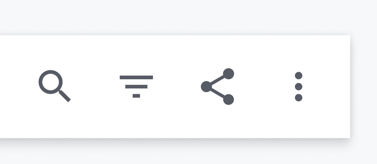 配置するアクションが4つ以上になる場合は、Ellipsis VerticalもしくはEllipsis HorizontalのIconのみのButtonを一番最後に配置して優先順位の低いアクションを格納できます。格納したアクションはMenuを使用して表示します。