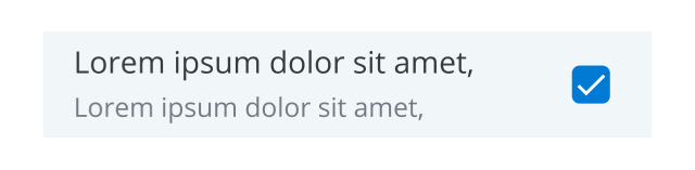 Listの中から複数のItemを選択できるようにする場合に使用します。タップターゲットはCheckboxだけではなく、Item全体になります。