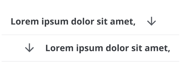 AlignをStart / Endから選択できます。デフォルトでは左揃えですが、右から左への言語の場合は反転する必要があります。扱うデータが数値型の場合はEndにしたほうが可読性が高まるためEndにすべきです。また、Arrow Downward IconのButtonをタップすることで、昇順 / 降順を回転のアニメーションで切り替えることができます。Startの場合はArrow Iconは最後につけ、Endの場合は最初につけます。見出しの役割を果たし、Descriptionと視覚的に差別化するため、Font WeightはBoldにします。テキストが長くなった場合は三点リーダーで省略します。
