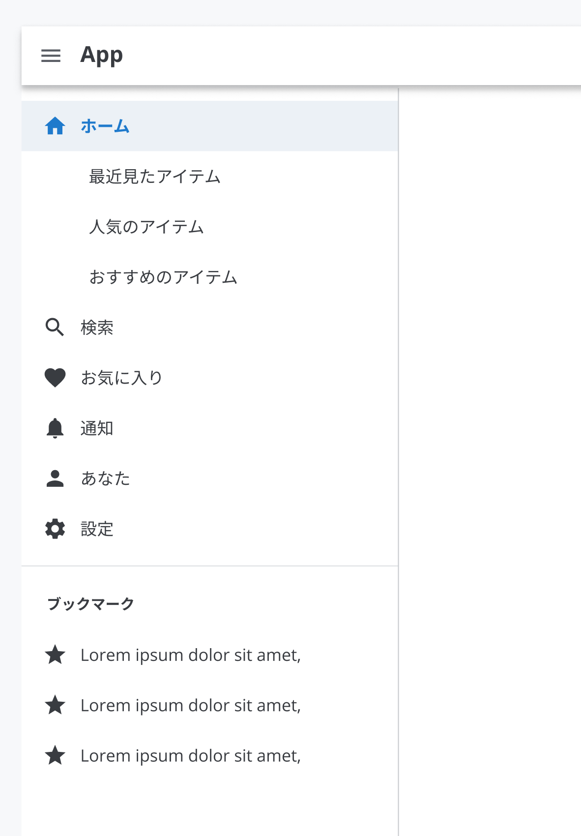 アプリケーションのどこからでもアクセスできる必要がある最上位の遷移先が3つ以上ある場合、かつデスクトップまたは大型タブレットの場合に、Side Navigationの使用が推奨されます。