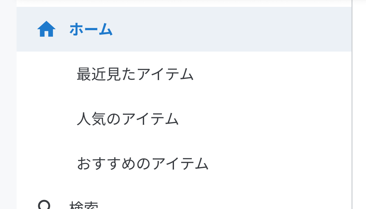 Navigation系のコンポーネントのうち、Side Navigationだけは大きな画面サイズで使用する特性上、現在Activeになっている画面に限り、子階層をインデントして表示することができます。