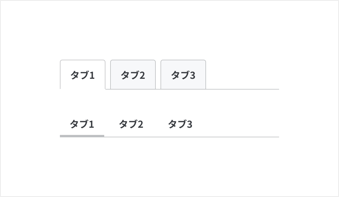 すべてのタブ項目にborderまたはbackground-colorによる装飾を施します。アクティブな項目とそれ以外の項目を明確に区別し、タブとしての視認性を高めます。